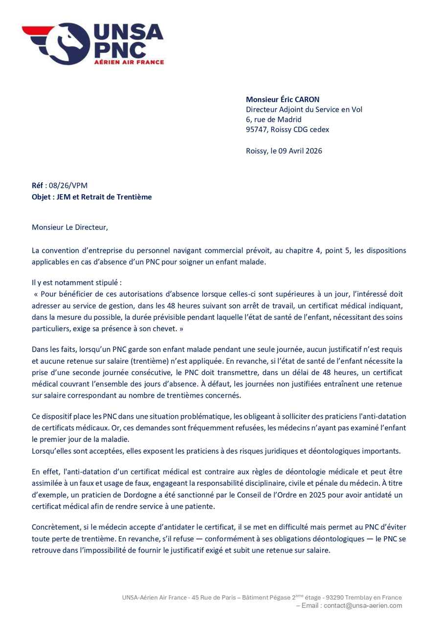 L’UNSA PNC demande un process clair, partagé par l’entreprise et la gestion paie PNC, qui ne nécessite aucun rattrapage fastidieux pour le PNC.