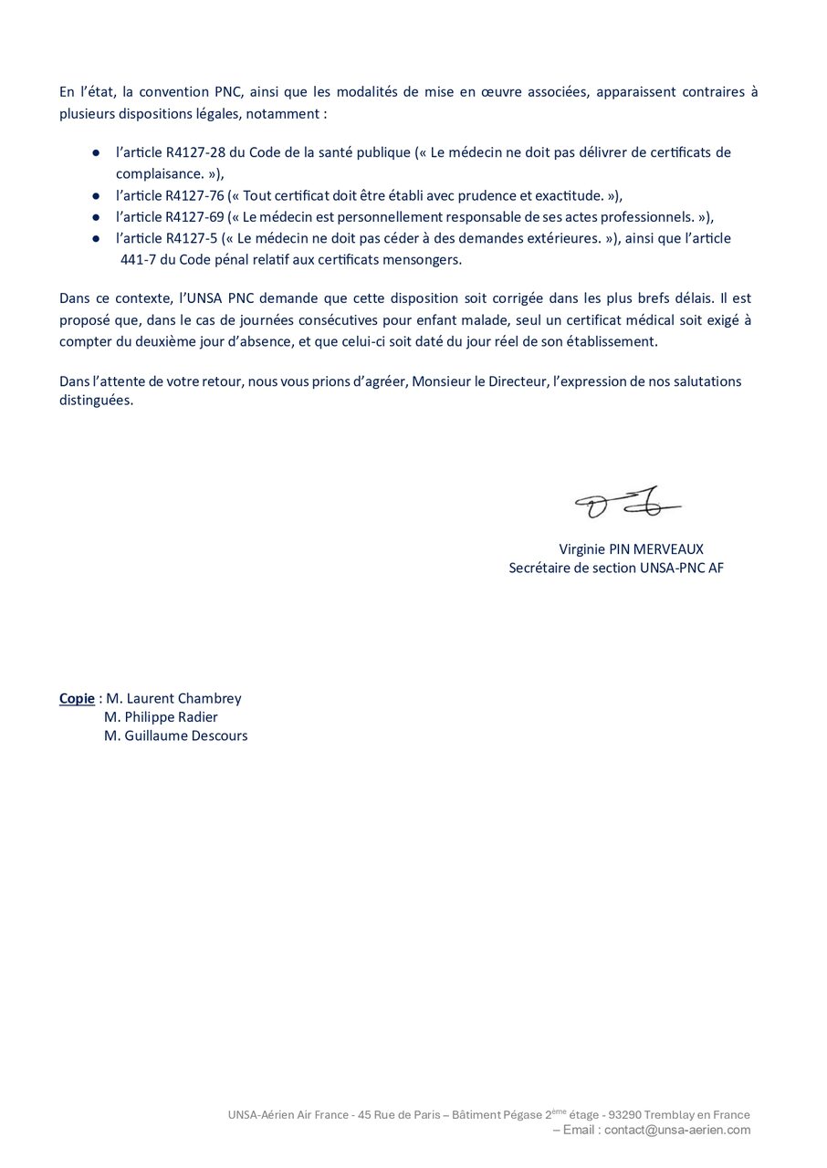Les PNC déclarant une première journée d’absence pour enfant malade qui ensuite se retrouvent obligés de prolonger cette absence d’un ou plusieurs jours, se voient demander un certificat médical par la gestion incluant le premier jour d’absence.