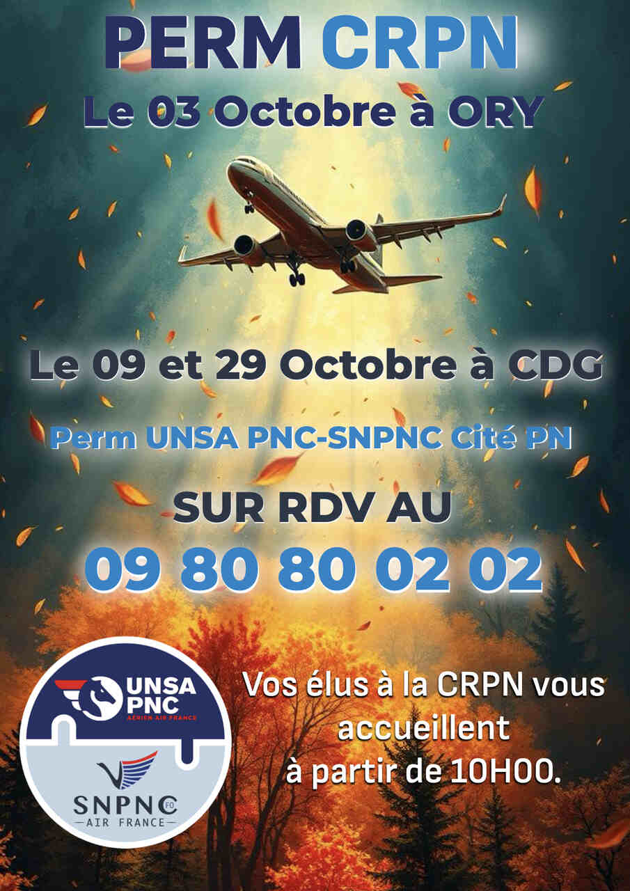 En Octobre vos élus UNSA/SNPNC à la CRPN vous recevrons dans les bureaux de l’UNSA PNC (pour RDV CDG) au 2ème étage ascenseurs rouges :