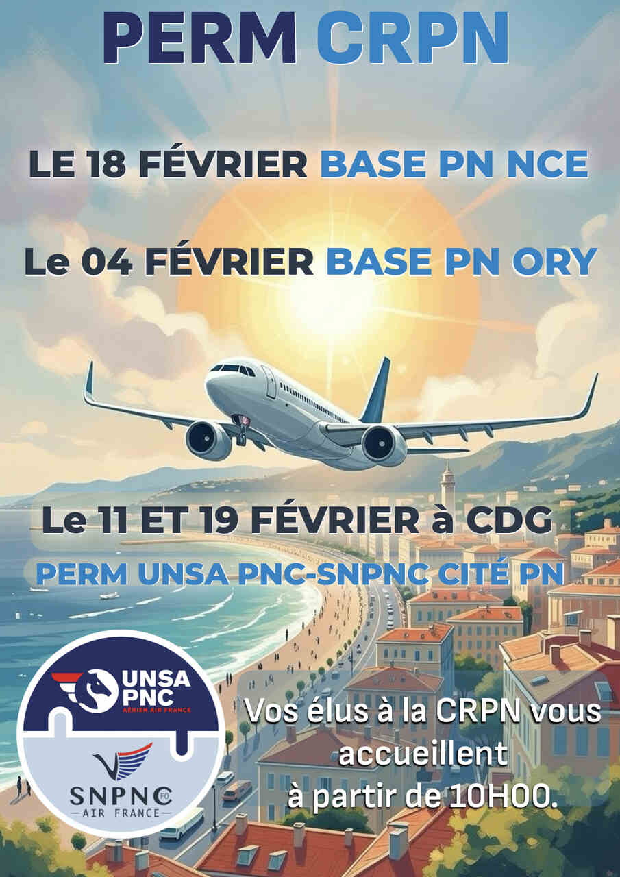 En Février vos élus UNSA/SNPNC à la CRPN vous recevrons dans les bureaux de l’UNSA PNC (pour RDV CDG) au 2ème étage ascenseurs rouges :