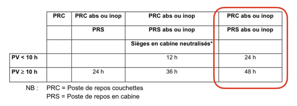 Pour le vol AF848 le cadre de permanence a refusé la demande des 24h de RADD (PV<10h) prétextant que « l’obtention du RADD suppose que le PRE soit INOP et un repos non pris» ! Ce qui est totalement FAUX !