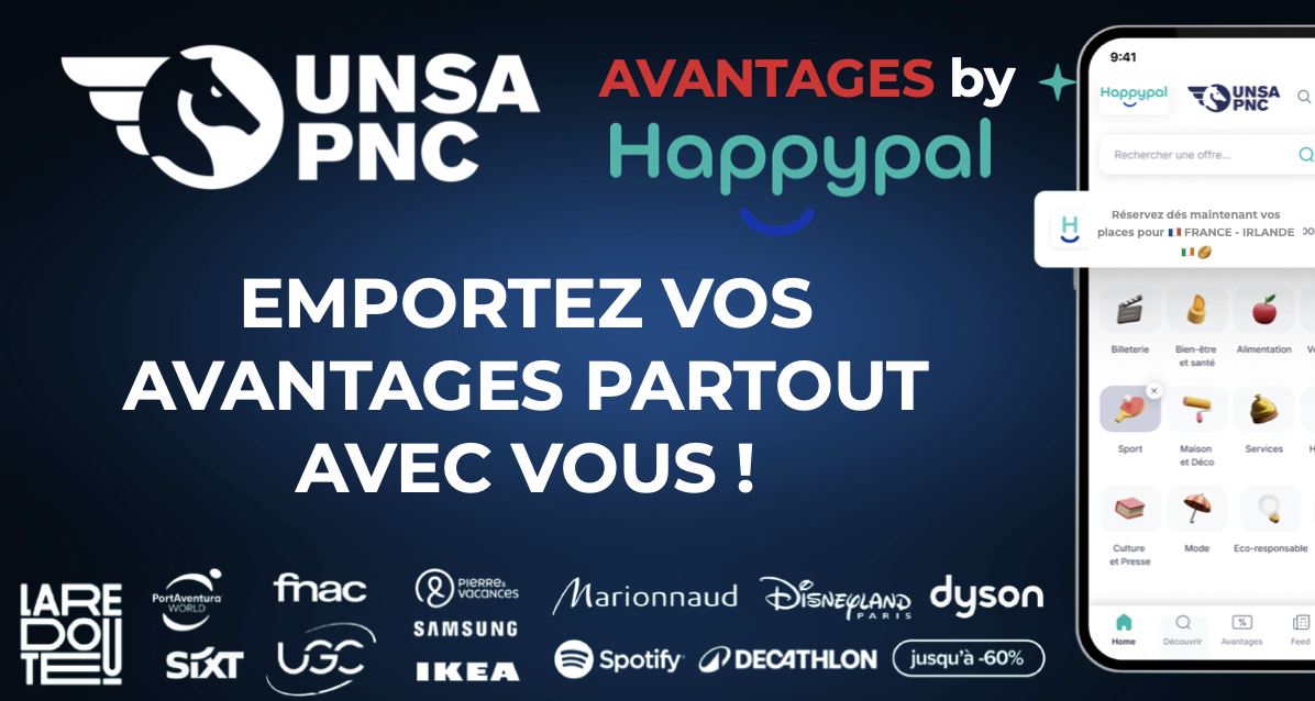 Depuis juillet 2025, l’UNSA PNC a mis en place un partenariat avec l’application HappyPal afin de proposer de nouveaux avantages à ses adhérents : UNSA PNC Avantages