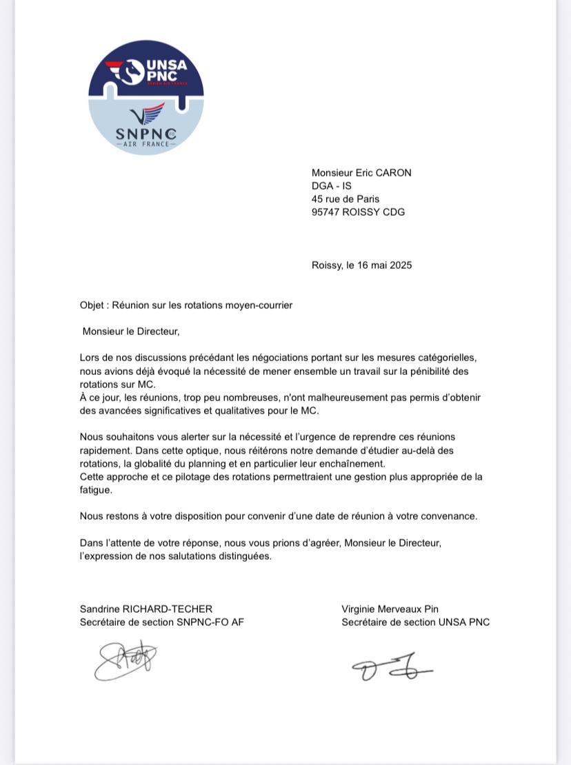 En s’appuyant sur l'étude mensuelle des “planches rotation”, les délégués UNSA PNC/SNPNC demandent depuis des années des aménagements et des allègements pour les rotations MC (notre courrier à la suite de cette publication) afin de limiter la charge de travail et les enchaînements trop pénibles.